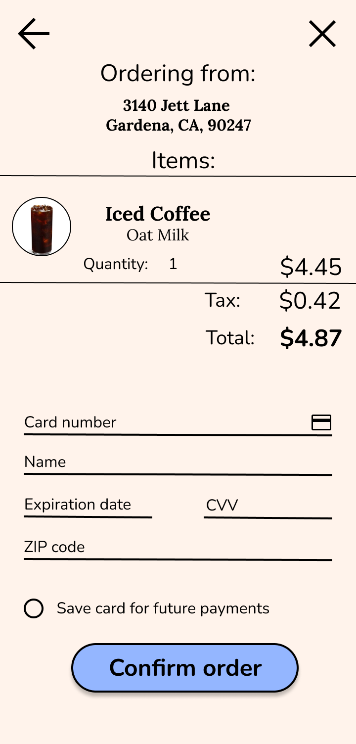 One of the findings from my user research was the need for customization of orders. This screen ensures there are options for several needs.